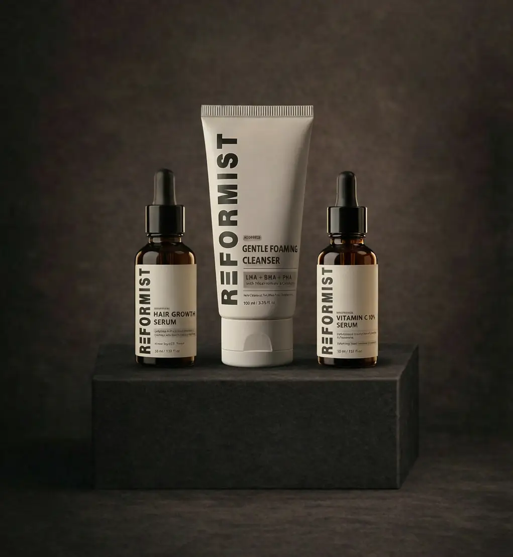 The Complete Essentials Set includes all three of our core formulas – the Foaming Cleanser, Vitamin C Serum, and Hair Growth Serum. It’s built for people who want a simple, no-confusion routine without adding unnecessary products.